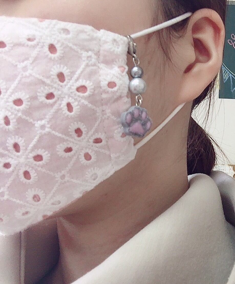 マスクに付けるチャーム、鞄などに付けるストラップにもなる肉球チャームです。